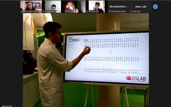START-Wien Stipendiat:innen durften heute an einem einstündigen Online Workshop von Vienna Open Lab zum Thema PCR Polymerase-Kettenreaktion bzw. Gelelektrophorese teilnehmen. Dabei haben sie Einblicke in die Technik und Anwendungsbereiche der PCR bekommen.