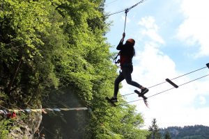 Später im Hochseilgarten lagen die Nerven bei einigen blank, aber mit viel Mut und vor allem viel Teamwork meisterten alle die nervenkitzelnde Strecke über Felsen und Flüsse und einige waren so begeistert, dass sie freiwillig noch einen weiteren Parcours machten.