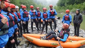 An unserem letzten Tag hatten wir die Wahl zwischen zwei Programmpunkten. Ein Teil der Gruppe machte eine GPS Schnitzeljagd – eine Wanderung, bei der sie viele kleine Rätsel lösen mussten, um an ihr Ziel zu gelangen. Die andere Gruppe wurde ins kalte Wasser geworfen, natürlich freiwillig, denn wir gingen zum Rafting. Nachdem sich jeder Ausrüstung und Boot geschnappt hat ging es los. Knapp zwei Stunden waren wir unterwegs. Obwohl sich das ein oder andere Boot umdrehte, der ein oder andere unfreiwillig schwimmen musste, war es trotzdem ein unglaublich schönes Erlebnis, bei dem wir auch Teamwork zeigen konnten.