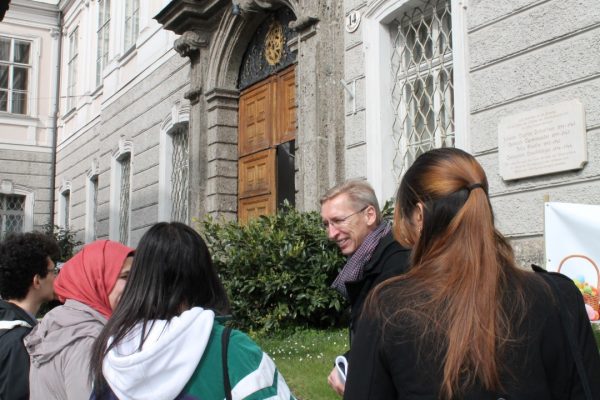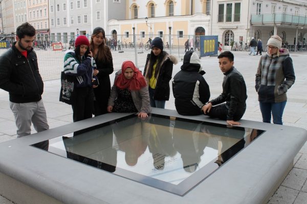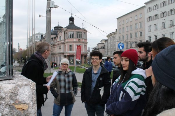 Als Vorbereitung auf die jährliche START-Österreich Exkursion nach Berlin zum Thema „politische Bildung“ begaben sich die Salzburger Stipendiatinnen und Stipendiaten am 05.04.2019 auf eine Spurensuche in die Salzburger Altstadt. Begleitet von Dr. Alexander Prenninger, Historiker am Ludwig Bolzmann-Institut für historische Sozialwissenschaft, betrachteten die START-Stipendiatinnen und Stipendiaten ihre Stadt aus einer anderen Perspektive. Denn bei diesem Stadtrundgang wurde nach sichtbaren oder unsichtbaren Zeichen gesucht, die der Nationalsozialismus hinterlassen hat. Aber auch Geschichten und Geschichte abseits von Gedenktafeln brachte Dr. Prenninger den Jugendlichen näher. Themen, wie öffentliches Gedenken, kollektive Erinnerung und individuelles Vergessen waren zentral bei diesem Rundgang.