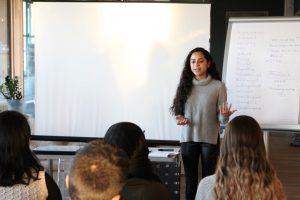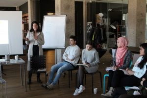 „Auf ein Assessment Center kann man sich nicht wirklich vorbereiten!“ erklärte Charlotte Eblinger, Chefin einer Personalagentur aus Wien, gleich zu Beginn den anwesenden Stipendiatinnen und Stipendiaten. „Aber man kann einige Dinge üben, sich Gedanken machen, Selbstreflexion spielt immer eine große Rolle, besonders wichtig aber ist, dass man authentisch ist.“ Gemeinsam erarbeiteten die Schülerinnen und Schüler in der START-Gruppe einen Tag lang Bewerbungssituationen sowie Fragen und Zielsetzungen für unterschiedliche Auswahlverfahren. Das Üben von Selbstpräsentationen und Rollenspielen half ihnen Ängste und Unsicherheiten in künftigen Bewerbungsverfahren besser zu begegnen.