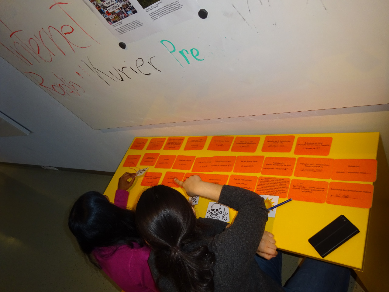 Am 18. März 2018 machten sich Stipendiat*innen aus Wien und Niederösterreich auf den Weg zum Haus der Geschichte im Museum Niederösterreich in St. Pölten. Bei diesem Vorbereitungstermin für die anstehende Berlinreise stand der „Kalte Krieg“ im Vordergrund. Anfangs rekonstruierten die Stipendiat*innen mithilfe einer Internetrecherche die Abfolge der wichtigsten Ereignisse während des Kalten Krieges. Diese wurden dann von unsrer Vermittlerin mit viel Details und Anekdoten ausgeschmückt. Auf dem anschließenden Rundgang durch die Ausstellung konnten noch spannende Ausstellungsstücke aus der besagten Zeit bewundert werden. Ein paar Eindrücke der Stipendiat*innen: