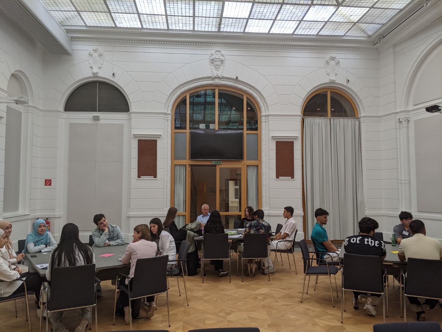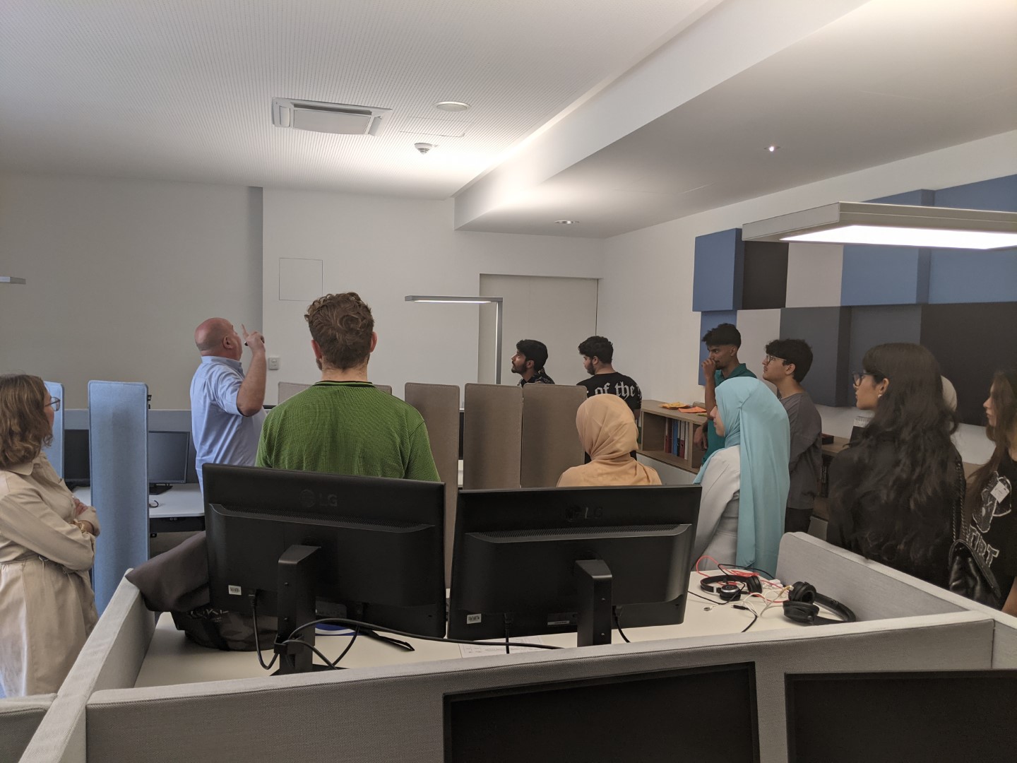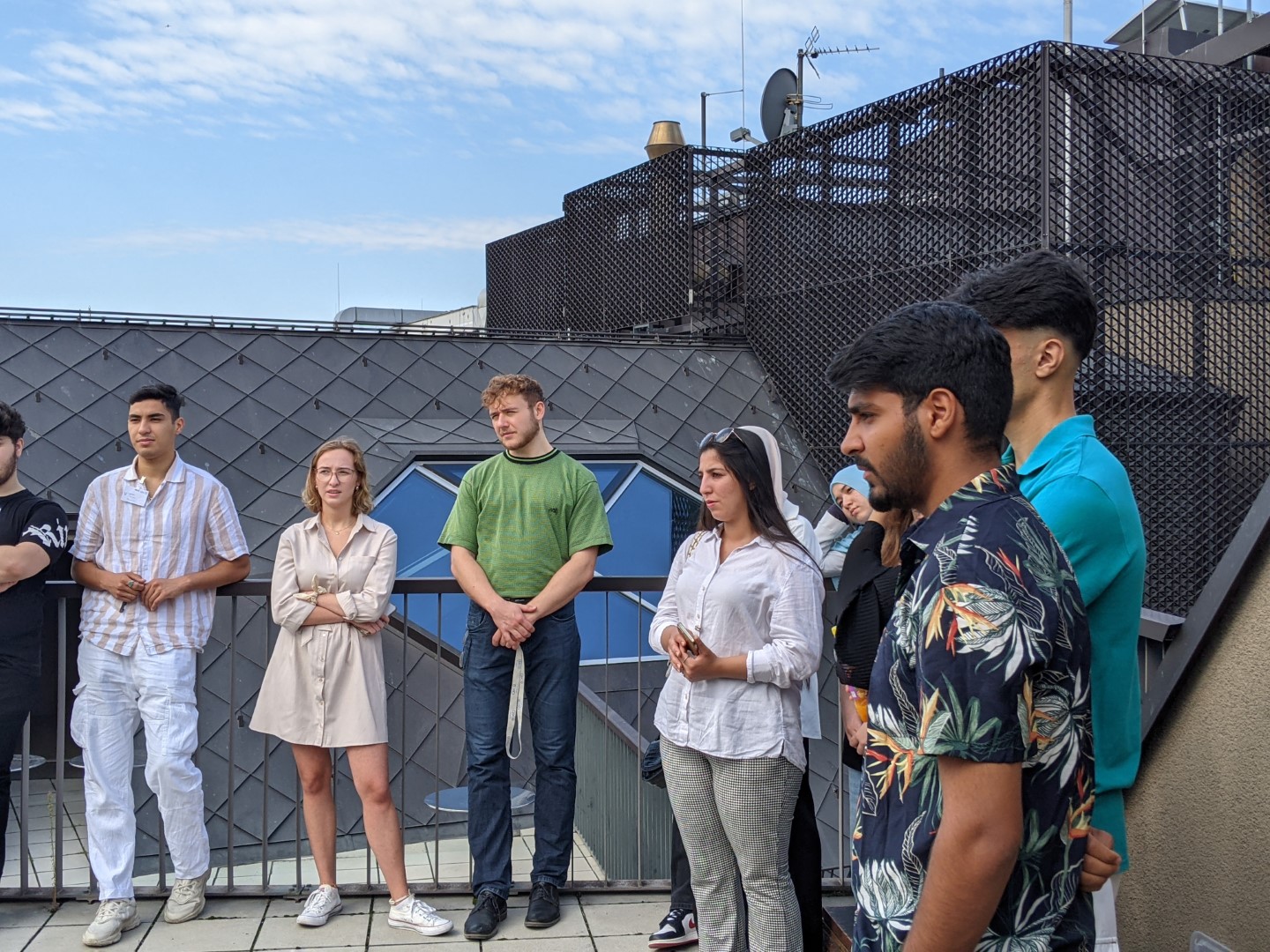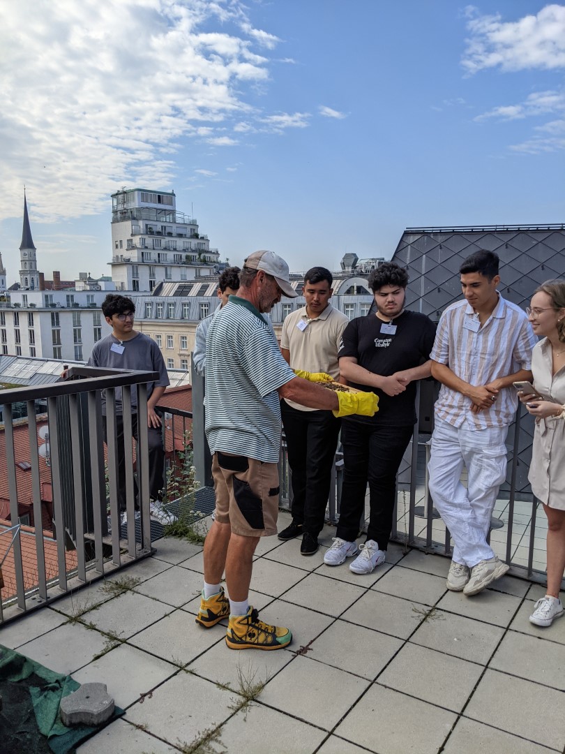 Nach eine Vorstellung des Unternehmens durften wir die Future Offices besichtigen und konnten so einen guten Einblick in die Arbeitsumgebung der Mitarbeiter:innen der OeKB gewinnen. Danach ging es aufs Dach zu den hauseigenen Bienen, die gerade vom Hausimker betreut wurden. Den meisten Stipis war die Nähe der Bienen nicht ganz geheuer – viele haben zum ersten Mal Bienen aus nächstes Nähe gesehen. Danke für diese tolle Gelegenheit.