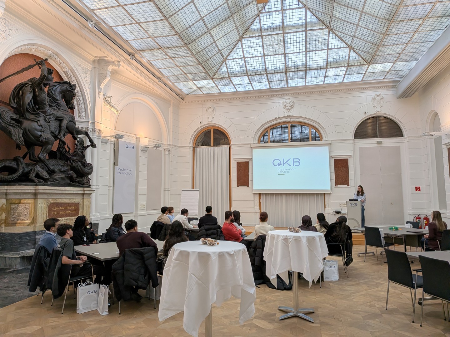 Am ersten Tag in den Osterferien waren Stipendiat:innen aus Wien und Niederösterreich bei der oesterreichischen Kontrollbank eingeladen, um mehr über das Unternehmen und die unterschiedlichen Arbeitsbereiche zu erfahren. Mitarbeiter:innen aus 5 Abteilungen nahmen sich Zeit und erzählten über ihre Tätigkeiten, ihre Aufgaben und ihren Arbeitsalltag.