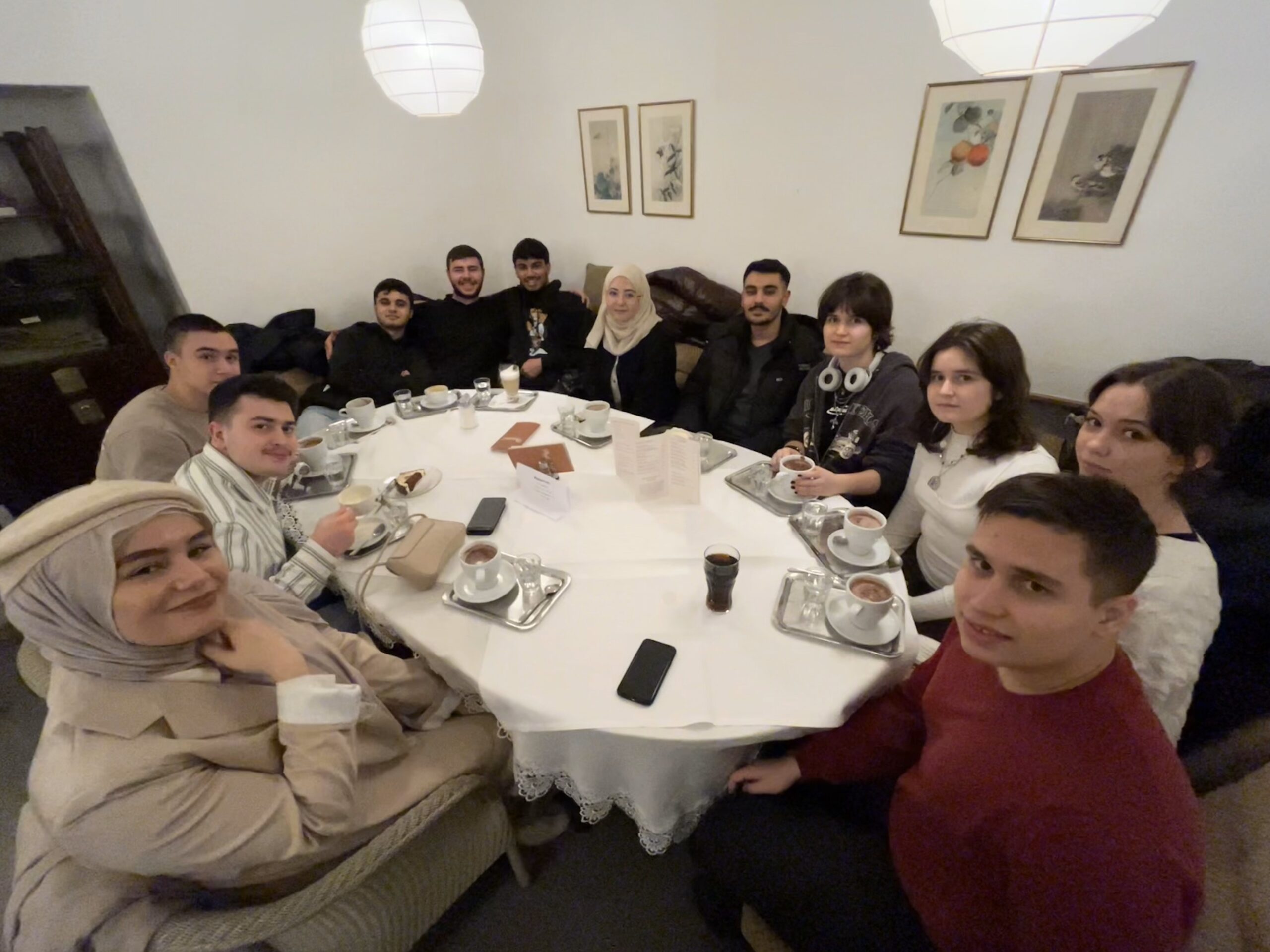 Im Anschluss gab es bei Getränken und Kuchen die Möglichkeit für die Stipendiaten mit ihrer Patin zu reden und sich so besser kennenzulernen. Zwei Alumni von START begleiten uns bei dem Besuch: Omran, der mit Hilfe von Frau de Castelbajac im Vorjahr sein erste Fotoausstellung organisieren konnte und Asmaa, die durch ihr Praktikum bei Constantia Flexibles ihren Traumberuf als Finanzbuchhalterin entdeckt hat!