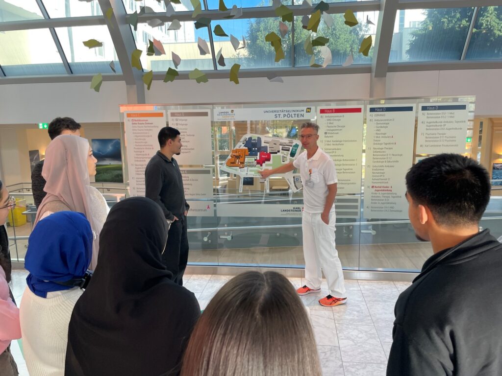 Am 29.10. haben die Starties aus Niederösterreich und Wien die Universitätsklinik und das Pflege- und Betreuungszentrum in St. Pölten besucht. Angekommen im Landeskrankenhaus wurden wir von Pflegedirektorin Prof. PhDr. Michaela Gansch und stellv. Pflegedirektor Prof. Oliver Loiskandl empfangen und haben einen spannenden Überblick über die Berufsmöglichkeiten und -vielfalt in der Klinik bekommen. Im Anschluss haben die Starties eine Führung durch das Gebäude bekommen und durften sich von der Klinikkapelle über den Schockraum, den Hubschrauberlandeplatz und die Psychiatrische Station viele verschiedene Bereiche und deren Arbeitsfelder innerhalb der Universitätsklinik anschauen und alle offenen Fragen besprechen. Nachdem die Starties sich ein Bild vom Klinikalltag gemacht haben ging es weiter in das Pflege- und Betreuungszentrums St. Pölten, wo uns Pflegedirektor Jörg Ney herzlich empfangen hat. Auch hier haben wir eine Führung durch das Gebäude und die verschiedenen Wohnbereiche bekommen und konnten spannende Einblicke in den Alltag und die Arbeitsweise der Pflegeeinrichtung gewinnen. Insgesamt haben unsere Jugendliche wertvolle Eindrücke aus erster Hand bekommen und es haben sich neue Ideen für die eigene berufliche Zukunft im Gesundheitswesen eröffnet. Vielen herzlichen Dank an die Landesgesundheitsagentur, die Universitätsklinik St. Pölten und das Pflege- und Betreuungszentrums St. Pölten für diesen tollen Tag!
