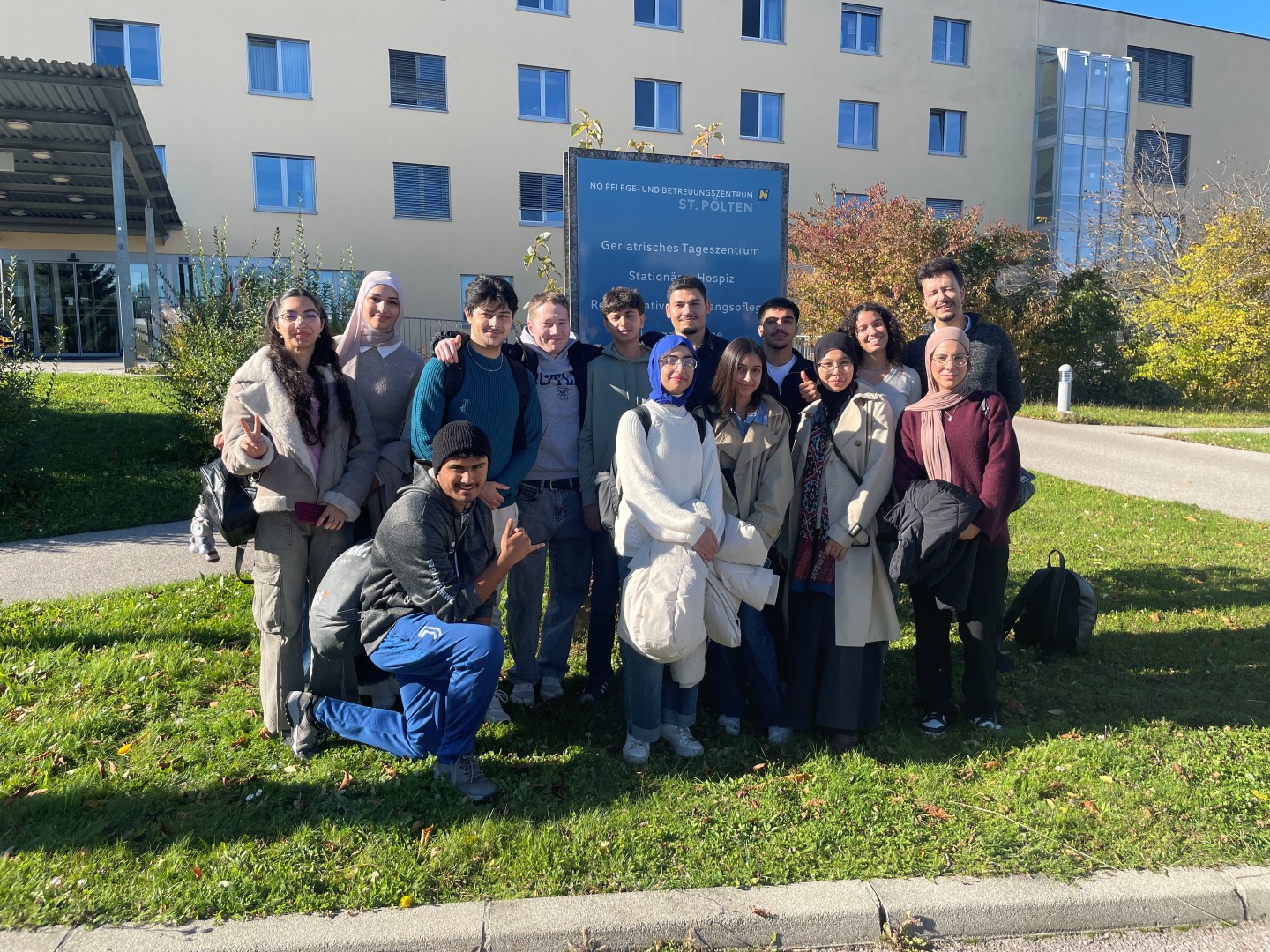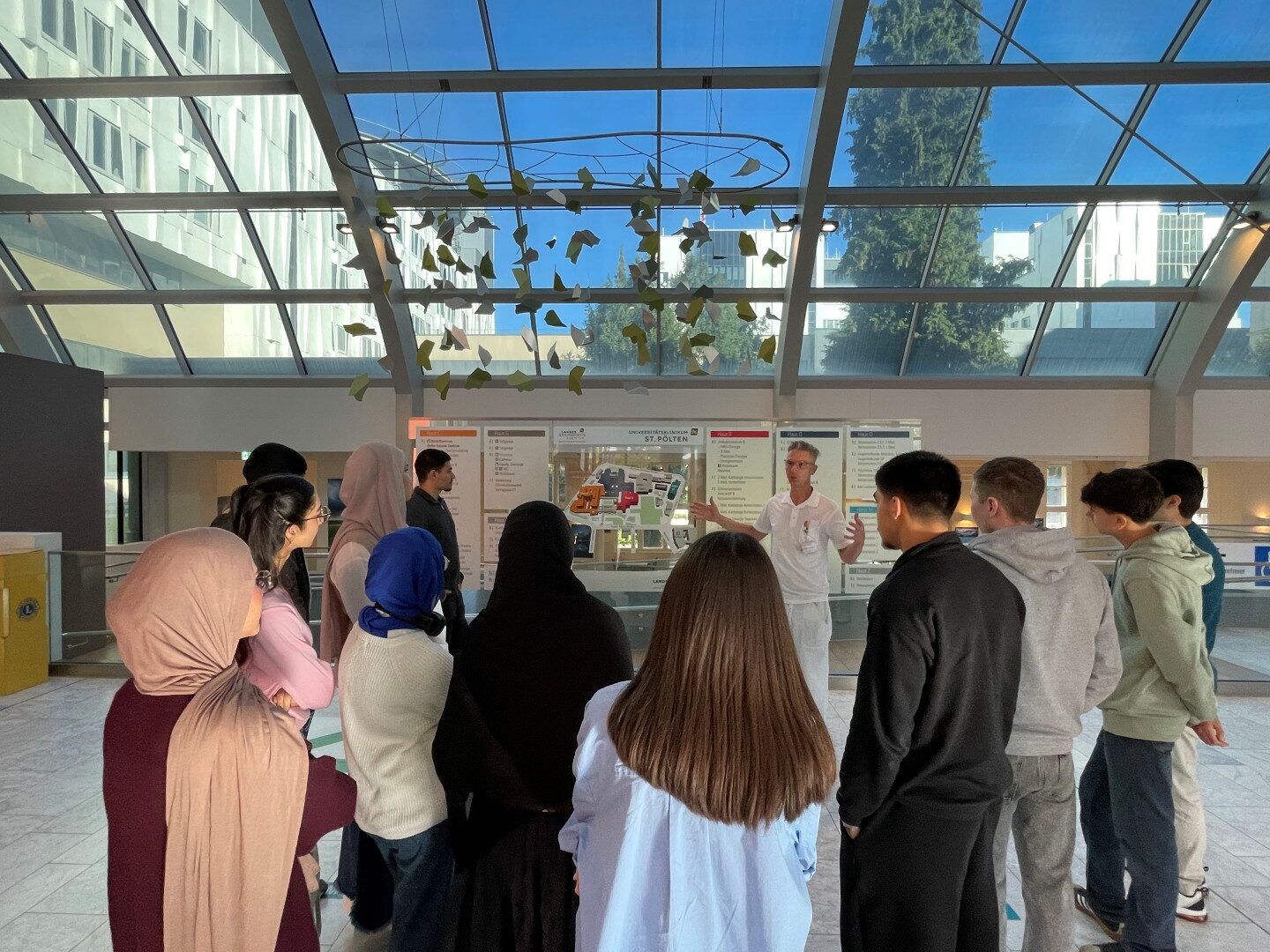 Am 29.10. haben die Starties aus Niederösterreich und Wien die Universitätsklinik und das Pflege- und Betreuungszentrum in St. Pölten besucht. Angekommen im Landeskrankenhaus wurden wir von Pflegedirektorin Prof. PhDr. Michaela Gansch und stellv. Pflegedirektor Prof. Oliver Loiskandl empfangen und haben einen spannenden Überblick über die Berufsmöglichkeiten und -vielfalt in der Klinik bekommen. Im Anschluss haben die Starties eine Führung durch das Gebäude bekommen und durften sich von der Klinikkapelle über den Schockraum, den Hubschrauberlandeplatz und die Psychiatrische Station viele verschiedene Bereiche und deren Arbeitsfelder innerhalb der Universitätsklinik anschauen und alle offenen Fragen besprechen. Nachdem die Starties sich ein Bild vom Klinikalltag gemacht haben ging es weiter in das Pflege- und Betreuungszentrums St. Pölten, wo uns Pflegedirektor Jörg Ney herzlich empfangen hat. Auch hier haben wir eine Führung durch das Gebäude und die verschiedenen Wohnbereiche bekommen und konnten spannende Einblicke in den Alltag und die Arbeitsweise der Pflegeeinrichtung gewinnen. Insgesamt haben unsere Jugendliche wertvolle Eindrücke aus erster Hand bekommen und es haben sich neue Ideen für die eigene berufliche Zukunft im Gesundheitswesen eröffnet. Vielen herzlichen Dank an die Landesgesundheitsagentur, die Universitätsklinik St. Pölten und das Pflege- und Betreuungszentrums St. Pölten für diesen tollen Tag!