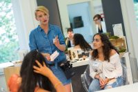 Während in der einen Gruppe der mitgebrachte Lebenslauf einem Check unterzogen wurde, bekam die andere Gruppe wertvolle Tips zu Styling, Kleidung und Auftreten. Eine Teilnehmerin wurde darüberhinaus geschminkt und gestylt.