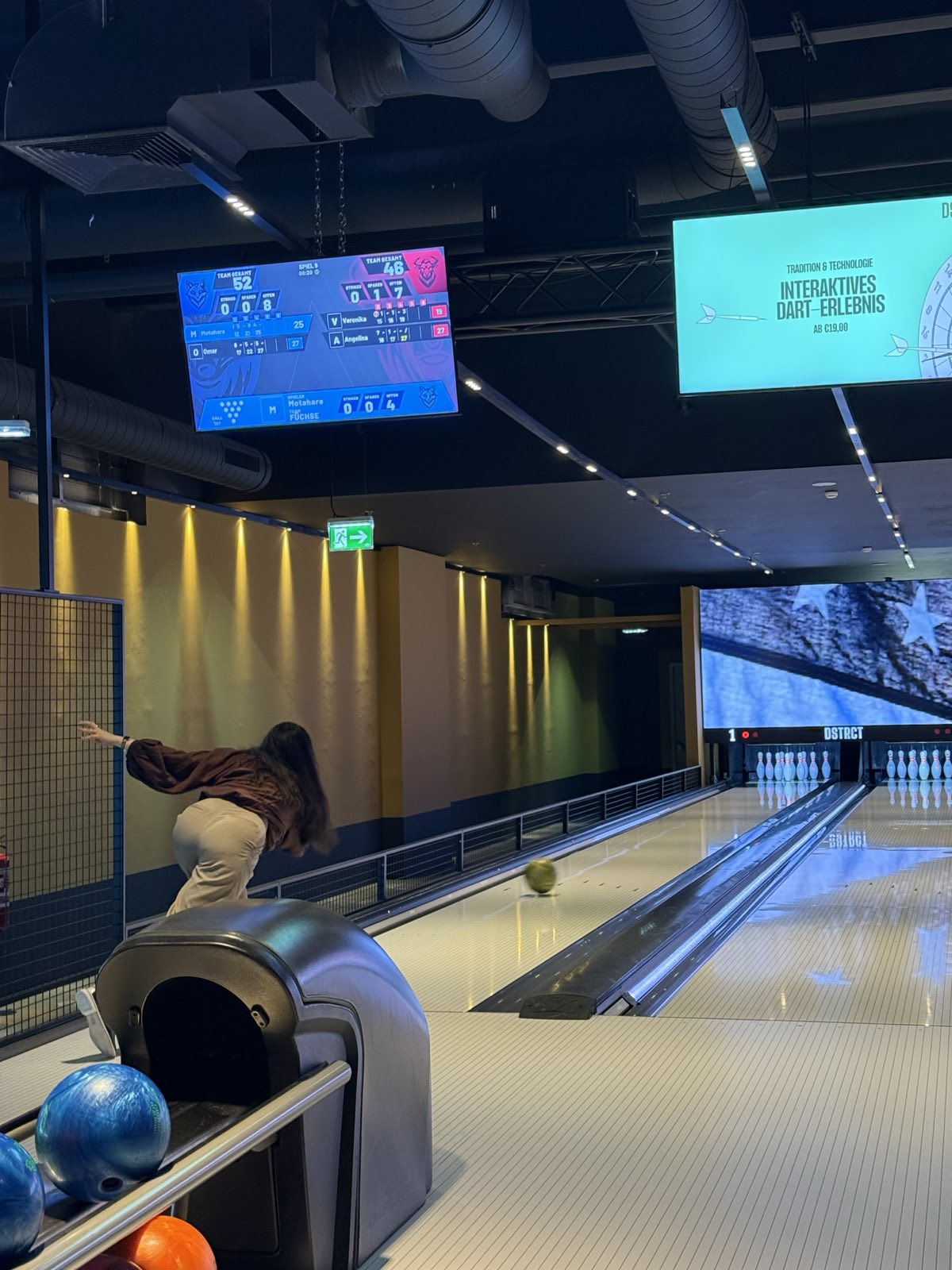 Am Dienstag den 28.10.2025 waren wir gemeinsam mit den Stipi-Sprecher:innen Bowlen. Wir haben Spaß gehabt. Zuerst haben wir einzeln gespielt und dann in Teams. Zusätzlich haben wir was zum Trinken bekommen während wir gespielt haben. Schließlich haben wir geredet über unsere Pläne in den Ferien. Am Ende möchte ich mich noch bei Start bedanken, dass ich dabei sein dürfte. ~Omar