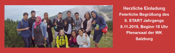 Sehr geehrte Damen und Herren! Liebe Freundinnen und Freunde des START-Stipendienprogramms! Mit der aktuellen Ausgabe des START-Salzburg Newsletter Nr. 6/2016 möchten wir Ihnen einen Einblick in die gemeinsamen Aktivitäten mit den START-Stipendiatinnen und Stipendiaten im vergangenen Schuljahr geben. Gleichzeitig laden wir Sie herzlich ein, den neuen siebten START-Salzburg Jahrgang kennen zu lernen. Feiern und begrüßen Sie
