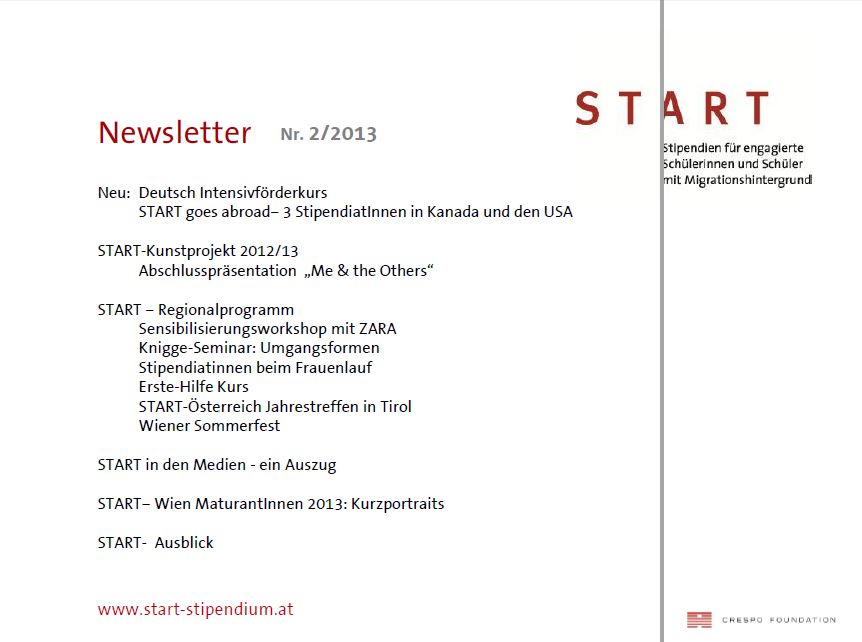 Für die 50 „neuen“ und die 50 „alten“ START-StipendiatInnen begann das START-Jahr traditionell mit dem verpflichtenden Bildungsseminar in Bildungshaus Puchberg bei Wels. Folgende Workshops standen am Programm: Rhetorik & Präsentation Bühnenpräsenz und selbstbewusstes Auftreten Einführung in die wissenschaftliche Textarbeit Gruppe & Konflikt Nach der Anreise am Freitag nachmittag und einer großen WIedersehensfreude unter den StipenidatInnen […]