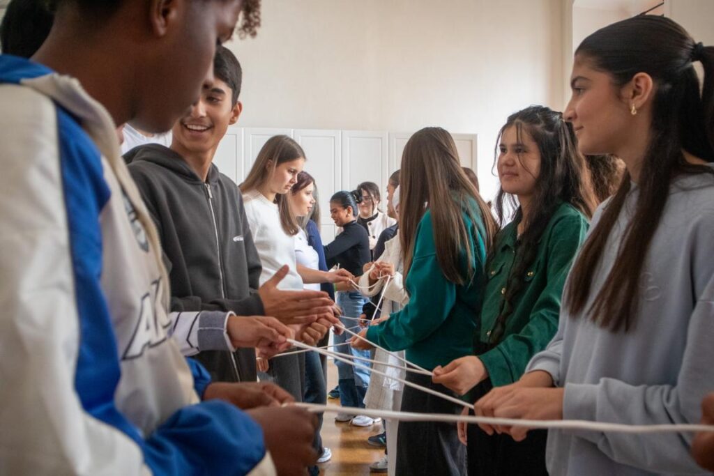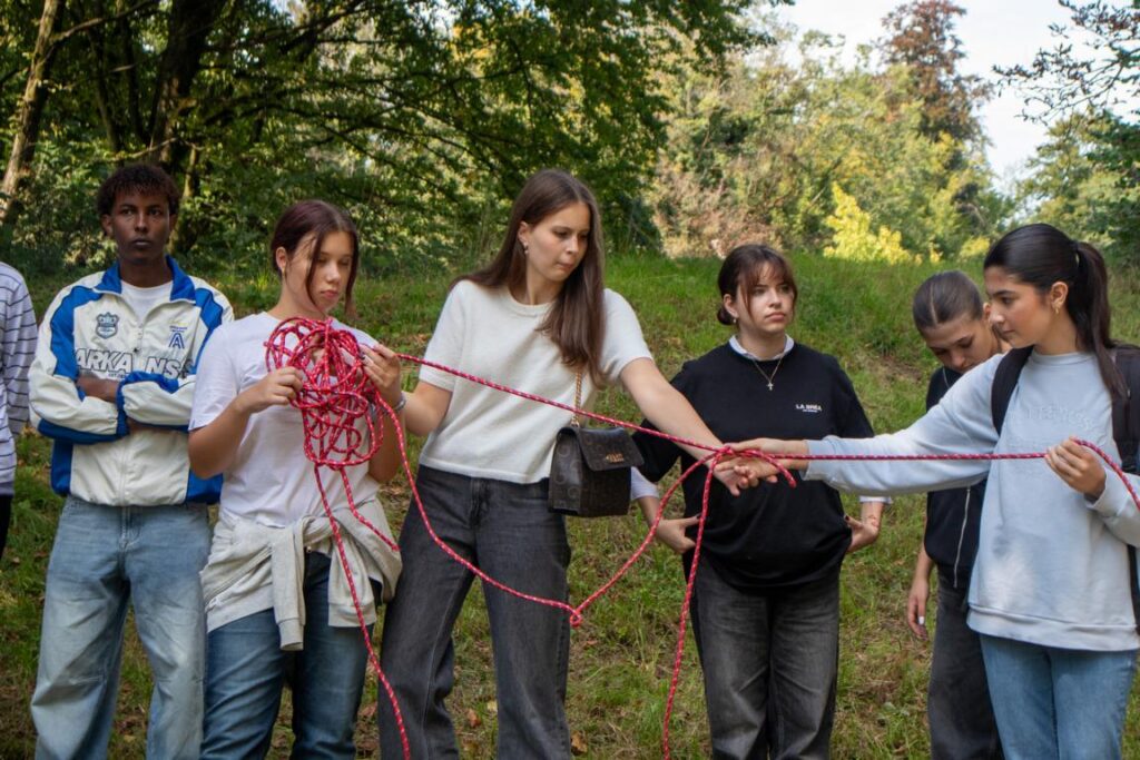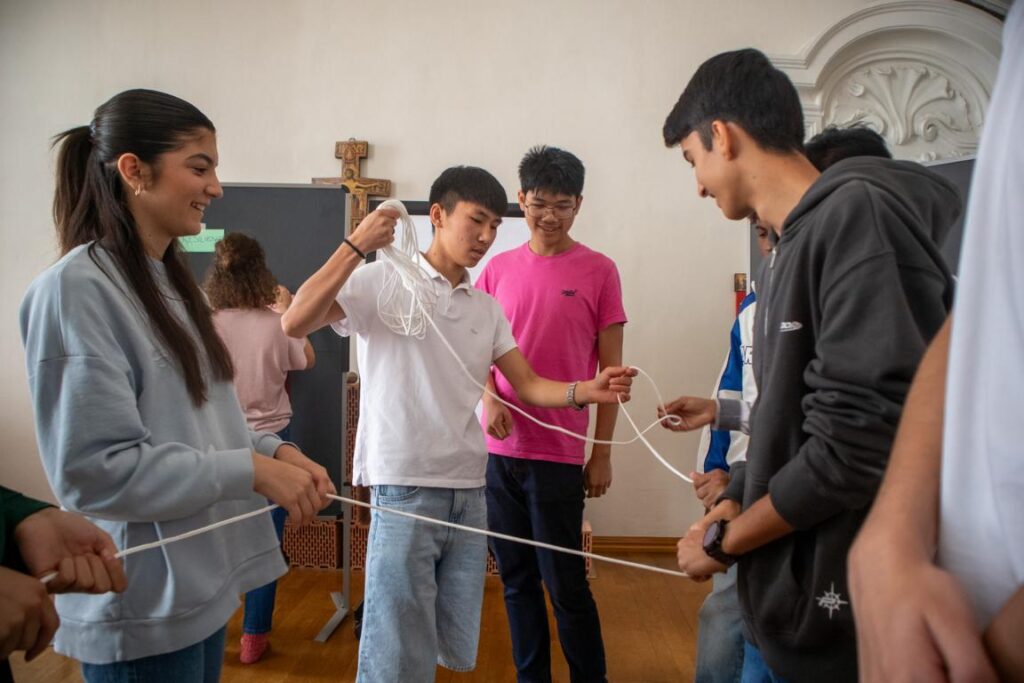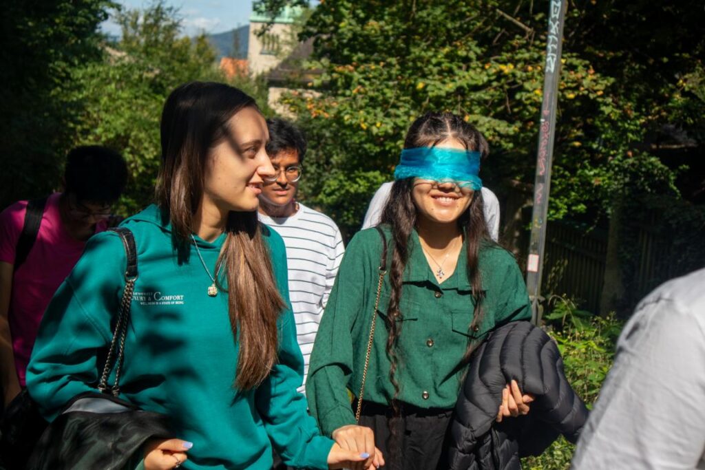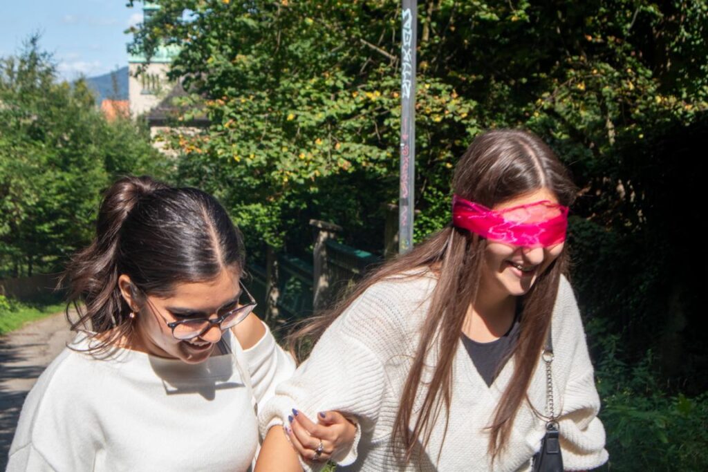 „Zuerst haben wir gemeinsam gefrühstückt und miteinander geredet. Danach hat das Seminar mit einer interessanten Aufgabe begonnen. Wir mussten Knoten eines Seils gemeinsam lösen, ohne das Seil loszulassen. Anschließend haben wir uns in kleinen Gruppen aufgeteilt und über ein paar Begriffe wie „Pause“ oder „Stress“ diskutiert. Sara hat uns auch eine Atemtechnik gezeigt, die sehr gut gegen Anspannung und Stress hilft. Das Seminar ging dann draußen weiter: Wir sind gemeinsam zum Mönchsberg spaziert und haben uns zu zweit gegenseitig geholfen, den Weg zu gehen, während einer von uns die Augen verbunden hatte. Danach haben wir über verschiedene Zonen unserer Gefühle gesprochen und ein Spiel gespielt. Später haben wir uns wieder in zwei Gruppen aufgeteilt und gemeinsam eine „Eier-Rettungs-Challenge“ gelöst. Nach dem Mittagessen haben wir uns noch genauer mit dem Begriff „Resilienz“ beschäftigt und zum Abschluss eine weitere Challenge mit Wasser gemeistert.“