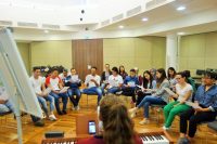 Um die Begrüßungsfeier am 03. Oktober abzurunden werden die START-Oberösterreich StipendiatInnen gemeinsam ein Lied singen. Fast alle der 30 Voll- und Vorstipis lernten am Samstag, den 23. September gemeinsam mit der Chorleiterin Sabine Rechberger ein deutschsprachiges Lied. Für die Probe durften wir den Festsaal der Raiffeisenlandesbank Oö verwenden, in welchem auch die Begrüßungsfeier stattfinden wird.