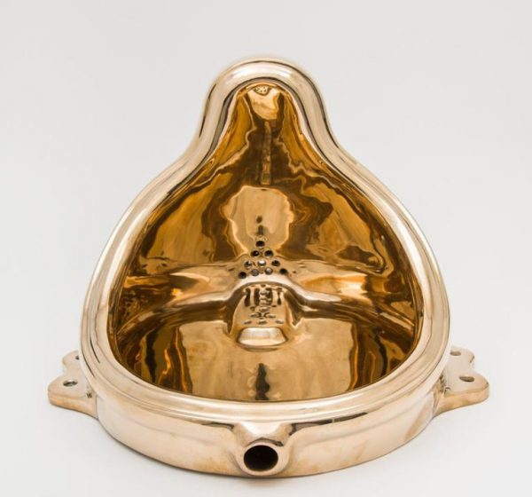 Im Ersten Blick scheint dieses, in Gold verkleidetes Klo so als hätte ein Scheich sich ein neues aus Diamanten anfertigen lassen und dieses wegwerfen lassen. Es ist zwar wahr, dass die Scheichen nichts geringeres als Gold akzeptieren, sogar für ihr Klo aber ich lag leider mit meinen Gedanken daneben und wie. Dieses Klo wurde im Jahr 1917 von Sherrie Levine offiziell zum Kunstwerk erklärt und seitdem wird dieses prachtvolle Kunststück überall auf der Welt in berühmtesten Museen als ein extraordinäres Kunststück ausgestellt. Leider konnte ich es nicht genau nachvollziehen, was Sherrie Levine’s Intension war bzw. wie er auf die Idee kam diese Kunst zu schaffen. Das ist mir leider ein Rätzel geblieben. Es ist indem fall Irrelevant weil ich als Betrachter meine objektive Meinung bzw. einen Kritik abgeben darf. Darum geht’s ja in der Welt von Kunst. Es ist ein Objekt da und der Betrachter soll aufgrund der vorhandenen bzw. sichtbaren (es gibt aber auch unsichtbare Details) Detail seine eigene Meinung bilden soll.