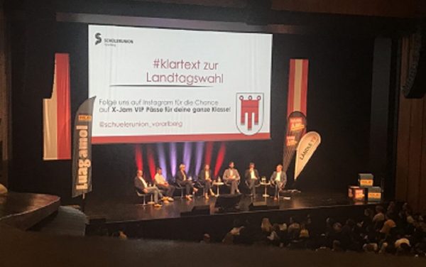 Als wir dort ankamen, bekamen wir Wahlzettel um vor der Diskussion wählen zu dürfen. Um zirka 9 Uhr eröffneten Daniel Bayer – Landesmann der Schülerunion in Vorarlberg und Johannes Vogl – Landesgeschäftsführer der Schülerunion in Vorarlberg, die Podiumsdiskussion. Nach dem Auftritt der Moderatorin und dem Moderator, kamen auch schon die angekündigten Politiker auf die Bühne: