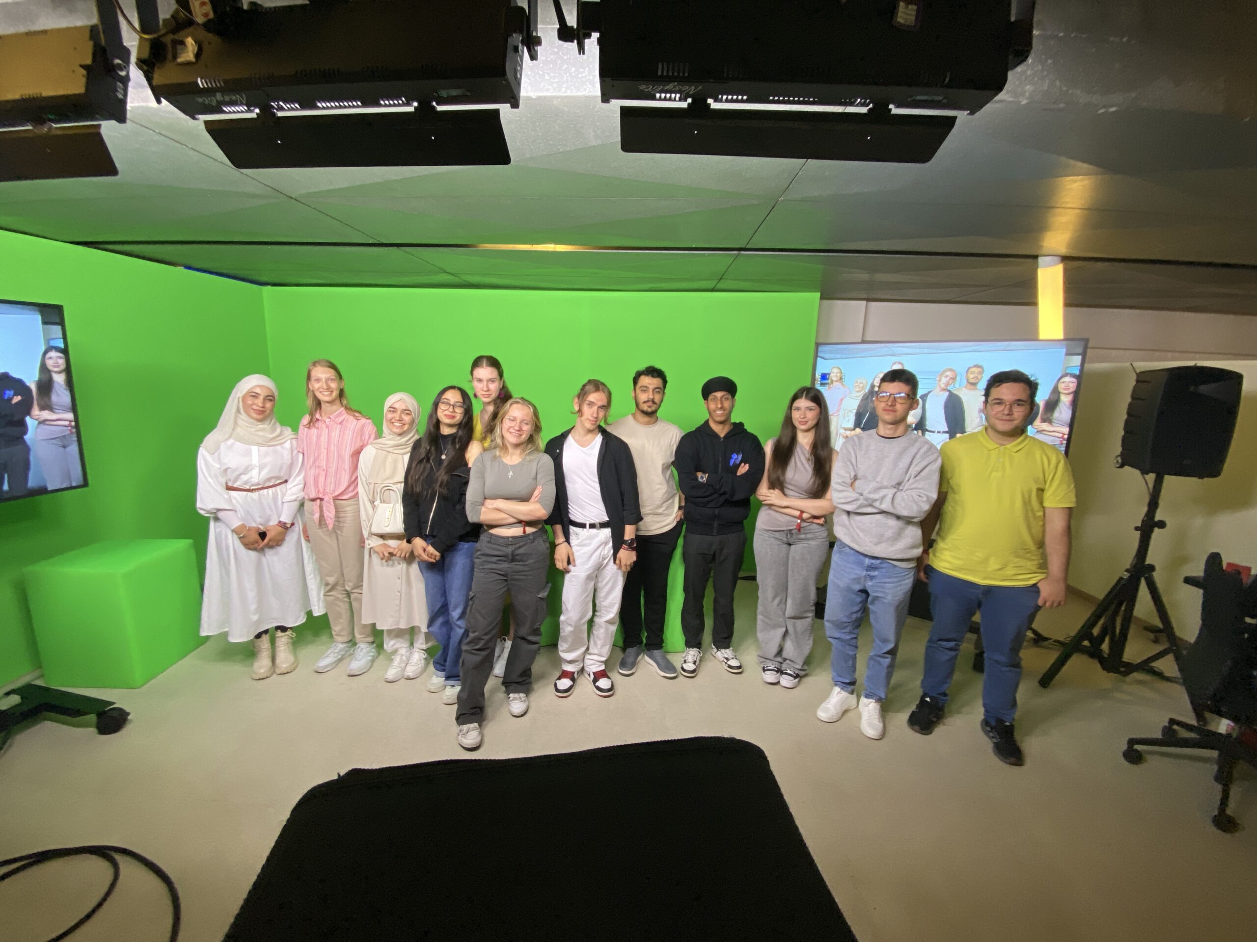 Am Ende der Führung durften wir uns selbst im Moderieren üben, und hatten viel Spaß bei Wetter und Nachrichten mit anderen Moderator:innen.