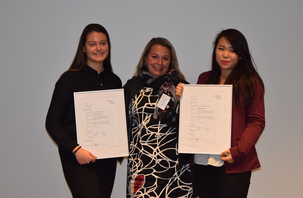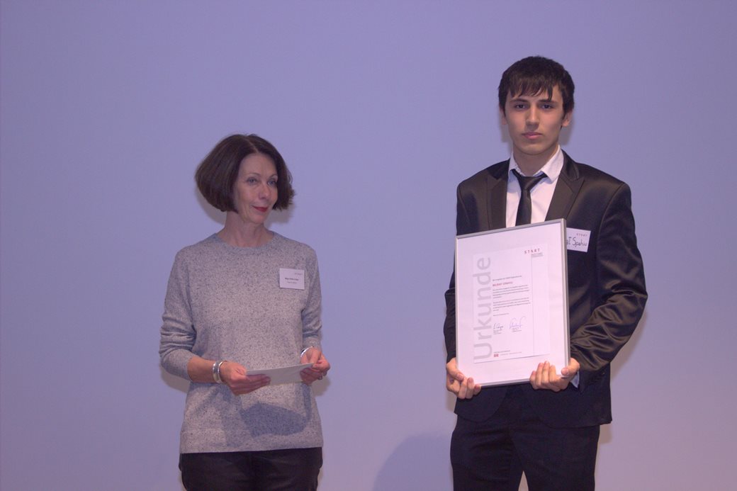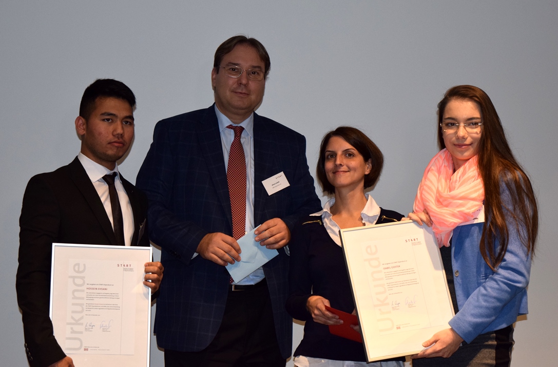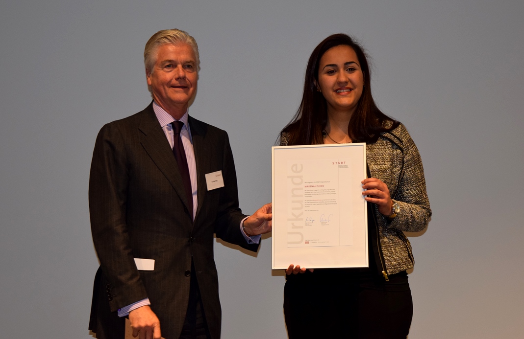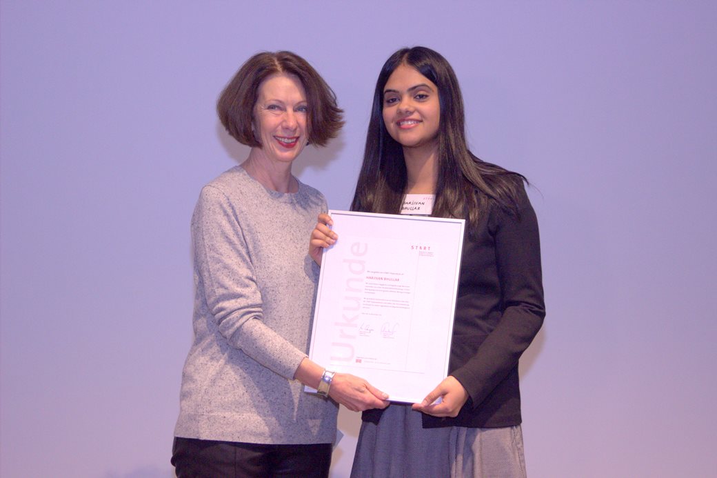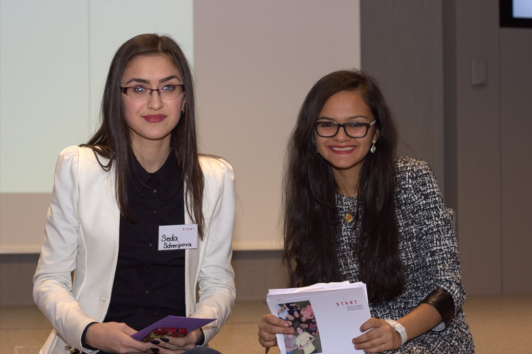 Hochprofessionell gaben sich auch zwei der neuen StipendtiatInnen, die siebzehnjährige Nahla Hamoudah und die fünfzehnjährige Marzia Suleimanli, bei ihrer Rede über „Bildung als Menschenrecht“ und darüber, was das Stipendium für sie bedeutet. „Der erste Schritt in die Zukunft beginnt mit der Bildung“, ist sind Nahla und Marzia überzeugt. „Man sollte in jedem Land willkommen geheißen werden und die gleichen Chancen bekommen. Denn Bildung ist auch ein Weg aus der Armut.“ Sie zitierten Hans Margolius: „Bildung ist nicht Wissen, sondern Interesse am Wissen.“ und freuen sich darüber, dass ihnen START genau dabei hilft: Interessen weiter zu verfolgen und neue Interessen und damit Wissen hinzuzugewinnen.