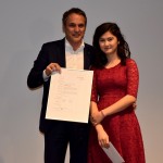 Aufgelockert wurde die Veranstaltung von musikalischen Beiträgen der Schüler_innen. Seda Scheripova sang „Read all about it“ von Emeli Sandé und begeisterte das Publikum mit ihrer Stimme und dem Mut, vor 250 Menschen alleine auf der Bühne zu stehen und zu singen. Ebenfalls für Gänsehaut sorgte die Interpretation von „Let it be“ des START-Wien Chores, der sich extra für die Feier gegründet hat. In der „großen Besetzung“ – der ganze 10. Jahrgang unterstützt von einigen „Alten“ stand auf der Bühne! – sangen die Schüler_innen zum Abschluss noch „Ein Hoch auf uns!“, unterstützt vom klatschenden Publikum.