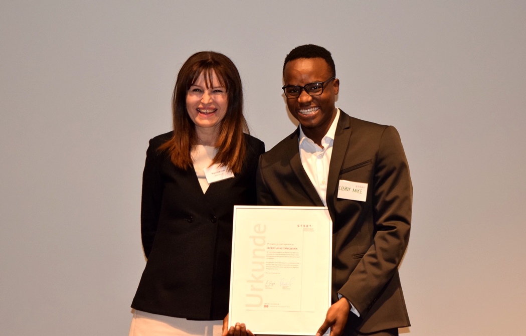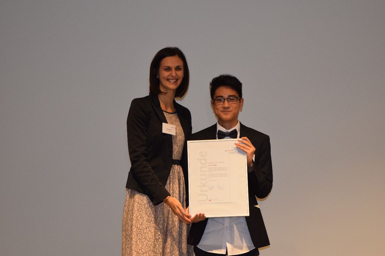 Stipendiat_innensprecherin Mahrukh Syed (18 J.) und Teofil Mataric (18 J.) führten als ModeratorInnen gekonnt durch das Programm. Begrüßt wurden die 250 Gäste durch KommR. DDr. Anton Ofner, Vizepräsident der Wirtschaftskammer Wien, und Dr. Aslak Petersen, Geschäftsführer der Crespo Foundation (Initiatorin von START-Wien). Auch Sebastian Kurz, Bundesminister für Europa, Integration und Äußeres, lies es sich nicht nehmen, den motivierten Jugendlichen eine Videobotschaft zukommen zu lassen. Unter anderem um sich bei den heuer 20 Absolvent_innen des Programms „für den wesentlichen Beitrag, den sie in Österreich leisten“ zu bedanken. Er verfolge das Projekt nun seit mehreren Jahren intensiv und mit anhaltender Begeisterung, denn „START-Wien ist eines der erfrischendsten und erfolgreichsten Projekte, die ich kennen lernen durfte, da es jungen Menschen direkt und unmittelbar eine Chance gibt, einen erfolgreichen Lebensweg einzuschlagen“, so Kurz in seiner Ansprache.