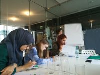 In der Pause konnten wir unsere Kursleiterin mit allen möglichen Fragen zu den Englisch-Studiengängen und dem Beruf des Dolmetschers durchlöchern, weil es uns Stipis besonders interessiert hat.