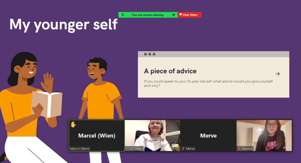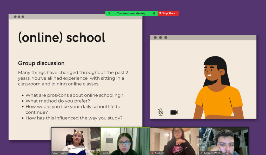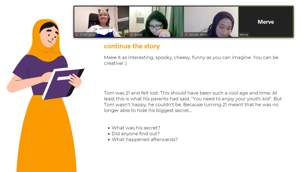Wir erzählten Geschichten und redeten auch über unsere Erfahrungen im Distance Learning. Ich fand die Atmosphäre sehr angenehm und man kann sich wirklich gut für die mündliche Matura vorbereiten. – Roqia