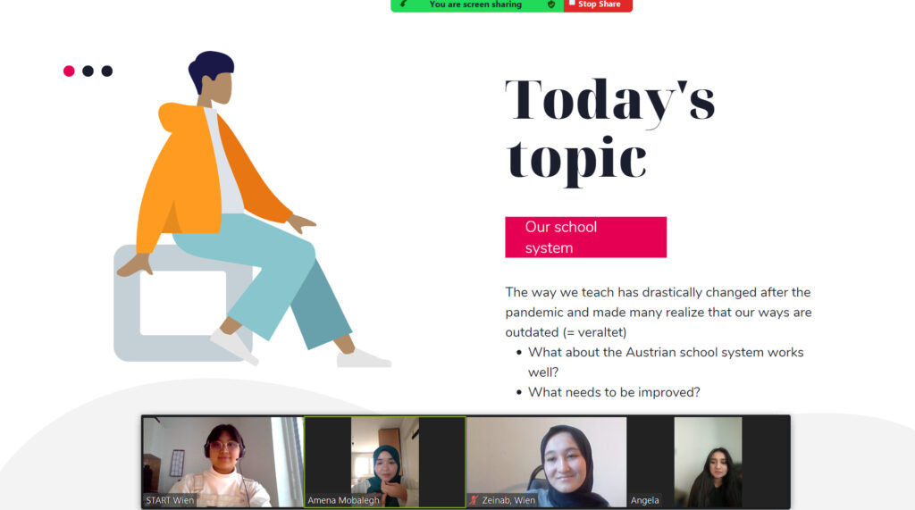 Soso und unsere START-Wien Stipis haben sich in der heutigen Conversation Class mit dem Thema “Our school system und Immigration & Emigration” auseinandergesetzt, viel diskutiert und darüber gelernt.