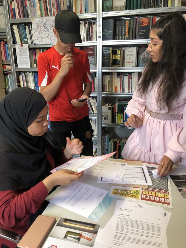 In Kleingruppen setzten sich die einzelnen Ermittlerteams zusammen und arbeiteten Beweise, Zeugenaussagen und Protokolle durch. Nach fast drei Stunden durfte jedes Team seine Ergebnisse präsentieren. Die einzelnen Ermittlerteams konnten sämtliche Aufgaben lösen und den Fall abschließen. Der krönende Abschluss des Abends war das gemeinsame Pizzaessen im START-Büro.