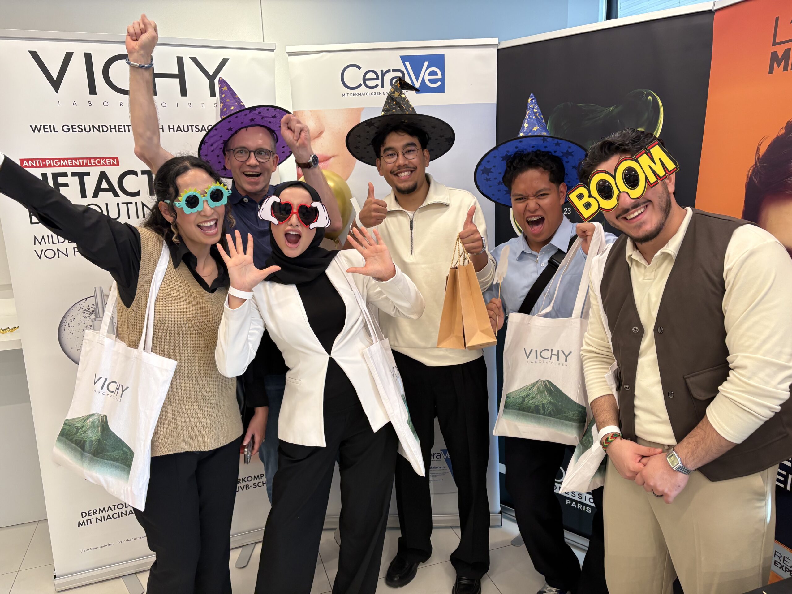 Als kleine Gruppe, bestehend aus mir (einem Mentee), den L’Oréal-Stipis Rihanna, Hadi, Cano und Betreuerin Samira, konnten wir verschiedene Stationen ausprobieren und einen kleinen Vorgeschmack für Halloween bekommen. In einer virtuellen Zauberküche verschiedene Zauber ausprobieren, kurz in die Rolle eines:r Friseurs:in hineinschlüpfen und magische Mocktails trinken, durften uns schlichtweg verzaubern. Dann ging es mit einem kurzen Infotausch wie L’Oréal nachhaltig ist, und dass wir auch ‘mal zu Refills greifen sollten, weiter. Davor darf natürlich ein kurzer Ausflug in die Parfumwelt nicht fehlen!