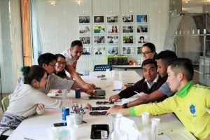 Als Erstes haben die Stipendiaten verschiedene kleine Gläser Wasser mit verschiedenen Geschmacksrichtungen bekommen. Wir kosteten alles und versuchten es zu erraten, was sehr schwierig war. Als nächstes haben verschiedene Stifte mit verschiedenen Aromen bekommen und ein Zettel mit verschiedenen Gerüchen, welche wir zuordnen mussten.