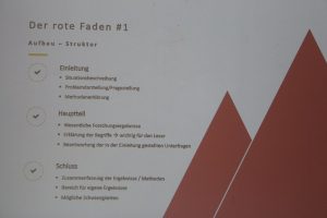 – Was muss ich beim Schreiben beachten, z.B. Einteilung der Kapitel, Kopieren von fremden Texten, Grafiken, Tabellen, Bilder (Plagiate). u.v.m