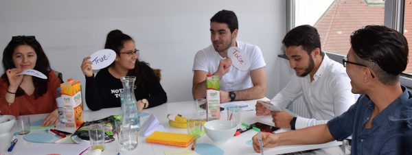 Wir haben viel über interessante Themen gesprochen wie Kultur, Gesellschaft, Gender und auch Respekt und Toleranz. Wir haben auch über Geschlechterrollen geredet und viel mit den Burschen darüber diskutiert. Wir haben uns auch mit Stereotypen beschäftigt, also was wir als typisch für ein bestimmtes Land sehen. Mit den True/False Karten haben wir dabei aber auch gemerkt, dass wir hier oft sehr unterschiedlich denken. Zum Schluss haben wir noch über Bilder von verschiedenen Menschen diskutiert und wen wir sympathisch finden und gerne kennenlernen wollen. Da haben wir besprochen, dass es wichtig ist jedem eine Chance zu geben und ihn oder sie zu respektieren.