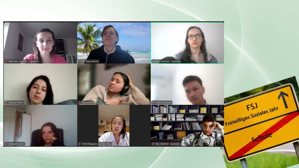 In den Osterferien nahmen sich 4 Absolvent:innen Zeit um interessierten Stipendiat:innen aus ganz Österreich über ihre Erfahrungen im In- und Ausland zu berichten. Josipa verbrachte ihr Auslandsjahr in Spanien, Mariana und Ibo ebenfalls in Spanien und Trinh erzählt über ihr freiwilliges Jahr in der Jugendarbeit im Inland in Salzburg.