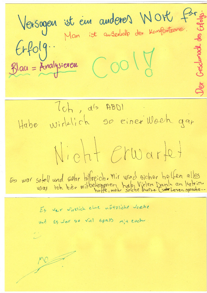 Jeden Tag um 8:15 Uhr im START-Büro angekommen und mit einem Häferl Kaffee gestärkt haben wir täglich vier Stunden damit verbracht, aktiv an unseren Schreibfähigkeiten zu arbeiten. Dabei wurden aber unsere Erwartungen weit übertroffen, denn nicht nur trockene Analyse der Textsorte Textanalyse wartete auf uns in den dicken blauen Mappen, die uns von Montag bis Freitag begleitet haben, sondern auch zahlreiche Übungen zur Entwicklung unseres Potentials.