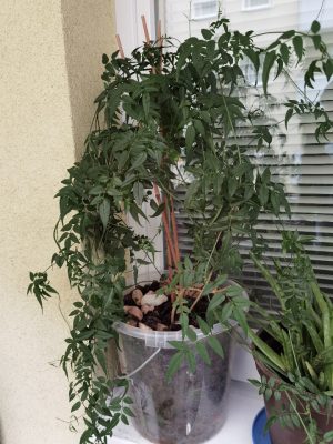Ich meine, wer bitte gibt Jasmin in einem Plastikeimer rein. Ich bin ein Klettergehölz und brauche Freiheit und Natur.