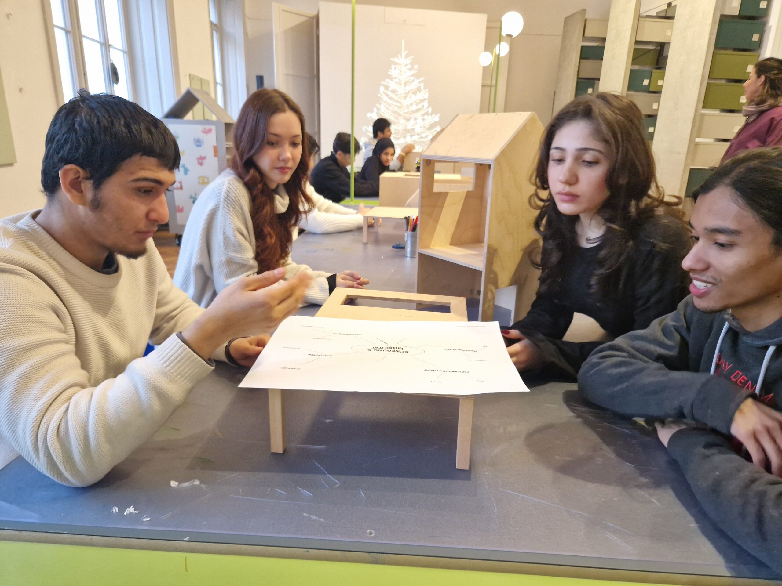 Der Workshop hat mir ziemlich gut gefallen, vor allem, weil wir nach der Führung durch die neue Ausstellung im interaktiven Teil so viel kreativen Freiraum hatten. Es war super, dass uns so viele Materialien zur Verfügung standen, um unsere ideale Gemeinschaft genau so zu gestalten, wie wir es uns vorgestellt haben. Besonders die Zusammenarbeit mit Melania, Cano und Rooia hat hervorragend geklappt, obwohl wir uns teilweise vorher nicht kannten. Der Austausch im Team sowie die abschließende Präsentation unserer Idee haben mir sehr gut gefallen. Auf unsere Umsetzung bin ich wirklich stolz. ~ Kerem