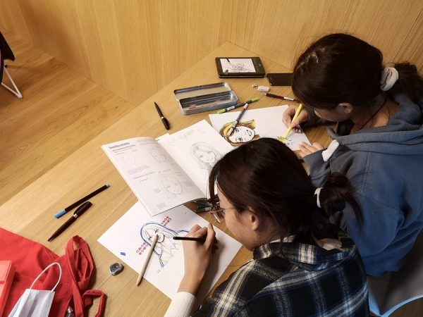 Der Manga-Zeichenworkshop, welcher in der Stadtbibliothek Dornbirn organisiert und stattfand, befasste sich genau mit diesem Thema. Dort lernten wir nicht nur was die wesentlichen Unterschiede von Mangas und herkömmlichen Comics sind, sondern konnten dort auch selber Hand an an Papier anlegen.