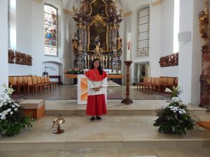 Martin in Hörbranz ministriere ich nun schon seit zehn Jahren regelmäßig in der Kirche. Seit drei Jahren bringe ich gemeinsam mit meinen zwei Freundinnen Deborah Sigg und Melanie Sutter, die ebenfalls aktiv in der Kirche tätig sind, das Ministrieren bei.