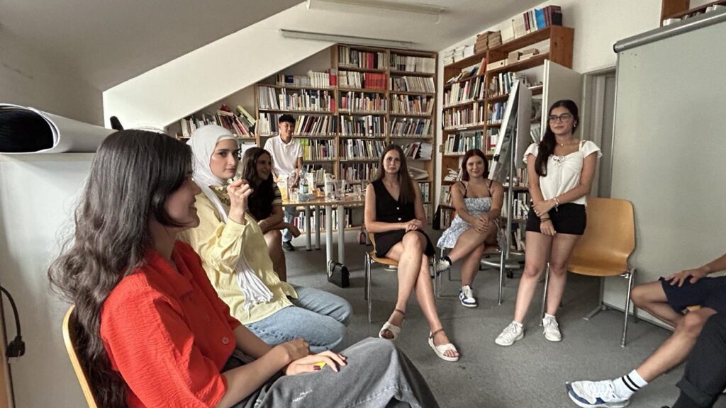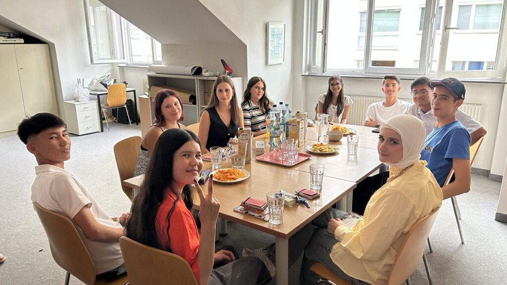 Anna: „Gestern haben wir uns zuerst kennengelernt und zusammen Werwolf gespielt. Danach sind wir in den Mirabellgarten gegangen und haben ein bisschen über uns erzählt. Zum Schluss sind wir noch gemeinsam zum Sunset Cinema gegangen – das hat mir richtig gut gefallen!“