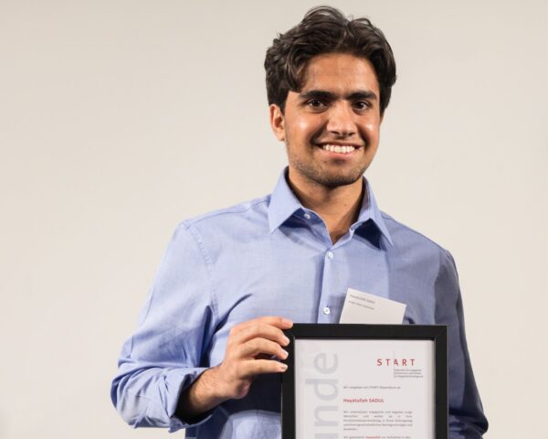 Das Programm START-Stipendium hat mir auch viele Dinge möglich gemacht, womit ich heute so viel in meinem Leben erreicht habe und sehr viele für meine Schule leisten kann, was ich brauche. Deshalb bin sehr dankbar für Österreich und START-Stipendium, dass sie mir so ein Leben möglich gemacht haben. Daher möchte ich auch meinen Beitrag der Gesellschaft leisten und Menschen helfen. Ich möchte nicht nur in die Schule gehen oder arbeiten, sondern möchte auch daneben ehrenamtlich was machen.