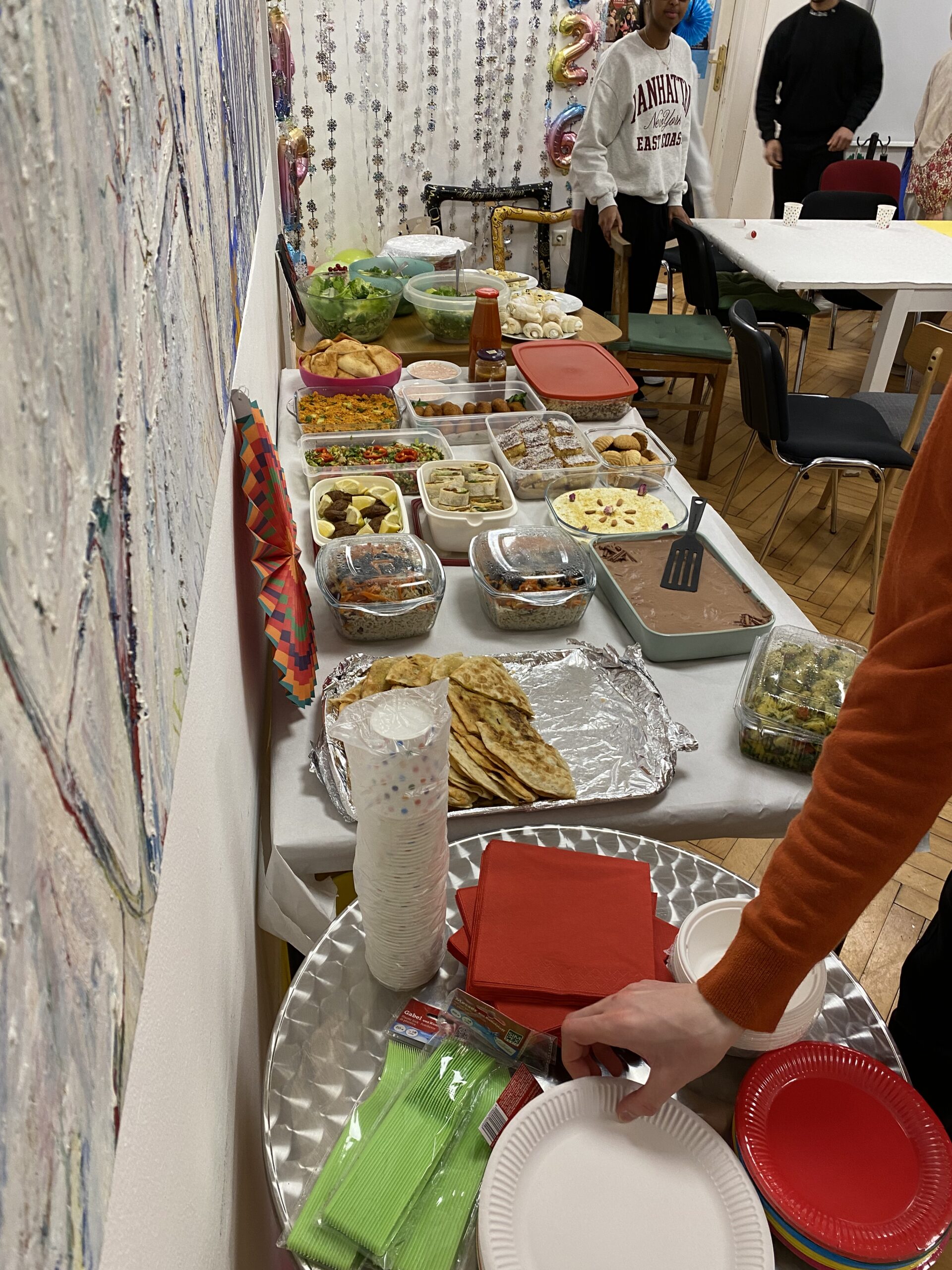 Das Essen war sehr lecker und es gab eine gute Auswahl, sodass für alle etwas dabei war. Alle haben etwas aus ihrer Kultur mitgenommen. Besonders gefallen haben mir auch das Tanzen und die Musik, die für eine angenehme und fröhliche Atmosphäre gesorgt haben.
