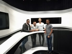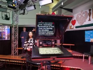 Dann haben wir auch noch die Möglichkeit bekommen einen umfassenden Einblick der gesamten Backstage-Aktivitäten zu bekommen. Wir hatten auch die Möglichkeit, selber zu filmen. Wir konnten selber die Kameras probieren und auch vor der Kamera stehen. Dort lernten wir auch dass es ein paar Tricks gibt die hinter der Kamera passieren.