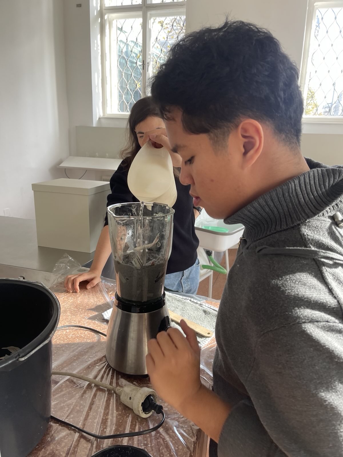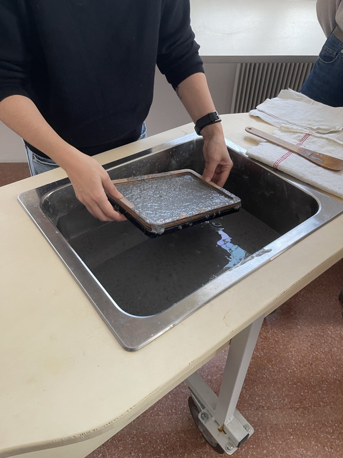 Das Papierschöpfen wollte ich schon privat ausprobieren. Dieser Workshop war daher eine sehr gute Gelegenheit für mich. Ich konnte lernen, wie es genau funktioniert und ich finde auch, dass wir eine angenehme Arbeitsatmosphäre hatten.