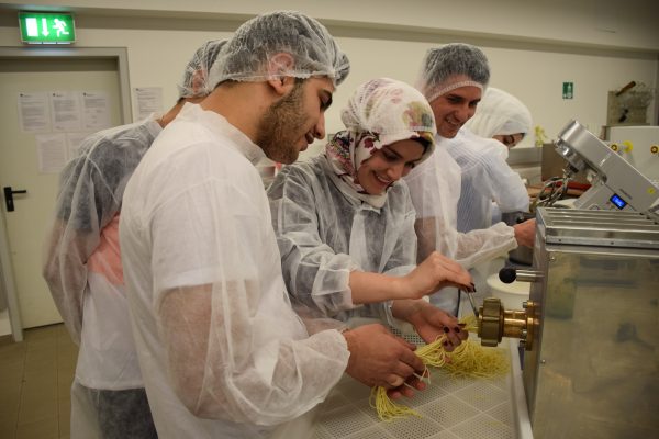Am Dienstag waren wir bei der FH Wieselburg. In der Früh sind wir mit dem Zug nach Wieselburg gefahren und am Mittag waren wir dort. Zuerst hat eine Dame von der FH Wieselburg uns informiert, was die Student*innen in FH Wieselburg machen, was für Ideen die Stundent*innen schon für Firmen herausgefunden wurden, z.B.: Becher für Salat von McDonald’s, und wie man aufgenommen wird. Nach dieser Einführung kamen wir ins Labor. Dort wurde uns von zwei kompetenten Damen alles erklärt und danach konnten wir selbst ans Werk gehen. Wir produzierten Nudeln in verschiedenen Geschmacksrichtungen und Farben z.B. Tomatenmark, Kräuter usw. Dabei konnten wir die maschinelle wie auch die manuelle Methode ausprobieren. Dabei mussten wir die Erfahrung machen, dass das Teigkneten harte Arbeit ist! Wir haben unsere selbst gemachte Nudeln dekorieret wie wir wollten und durften sie auch mit nach Hause nehmen. Als Erinnerung überreichte man uns Informationsmaterial.