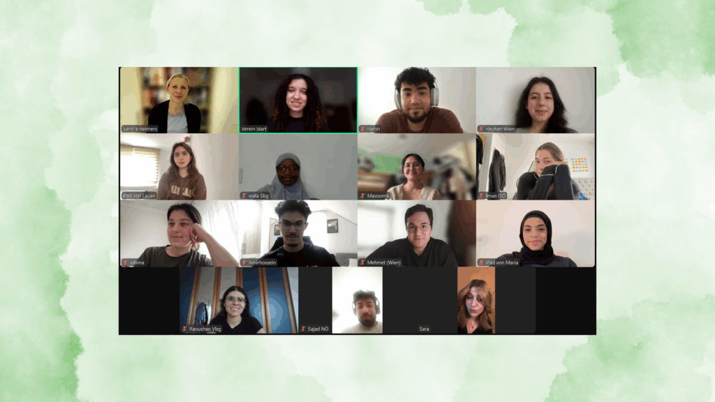 Im Workshop mit der lieben Sandra sind wir Lernstrategien durchgegangen, „Lernen“ gelernt sozusagen. Es hat mir sehr gefallen, es war kein WS, wo man drei Stunden lang nur zuhört, sondern er war interaktiv gestaltet, wo wir mitmachen und unsere Ideen einbringen konnten. Danke an Sandra für den WS und an START für die Organisation! -Mehmet