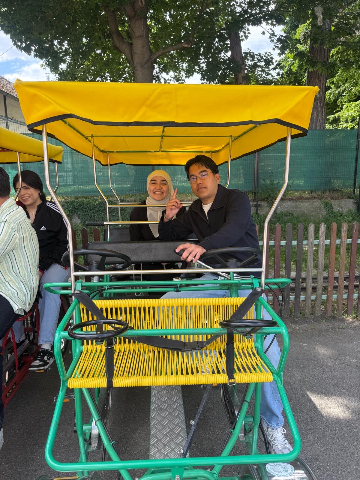 Ich liebe Fahrradfahren, aber ich bin noch nie mit einem Vierer-Fahrrad gefahren. Heute fand ich es richtig cool, das einmal auszuprobieren – mit Musik und mitten in der Natur. Danach haben wir ein Picknick gemacht. Das Essen war sehr lecker und wir haben gemeinsam gespielt. Ein großes Dankeschön an unsere Stipisprecher für diese tolle Aktion! ~ Roaa