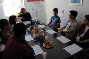 Am 12. Mai 2018 fand im Rahmen der Schreibwerkstatt Reihe der Workshop zum Thema Erörterung im START Büro statt. Unsere Referentin Evelyn Brandt erklärte sich für unsere StipendiatInnen bereit und beschäftigte sich sehr professionell und gut vorbereitet ins Thema.