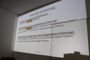 Yiwei: „Gut fand ich, dass wir die Basis und die Grundschritte genau analysiert haben und detailliert durchgegangen sind, was ich auf jeden Fall mitnehmen werde. Somit habe ich eine gute Basis in Verfassen von Erörterungen gewonnen.“
