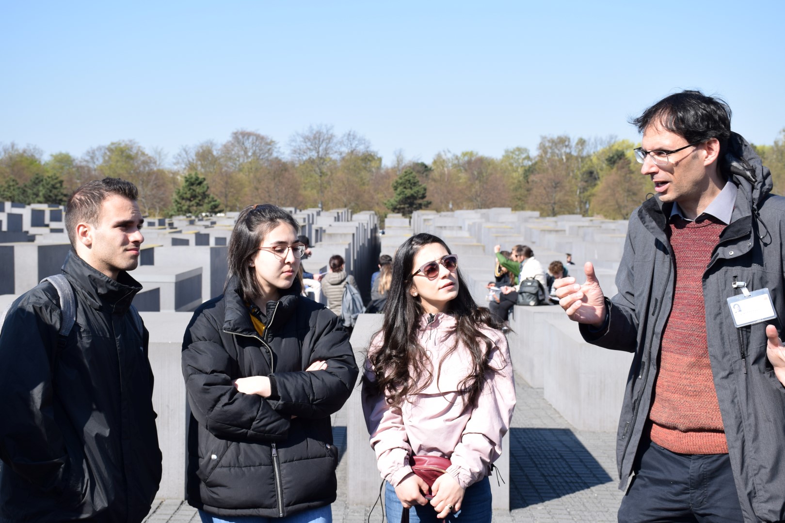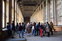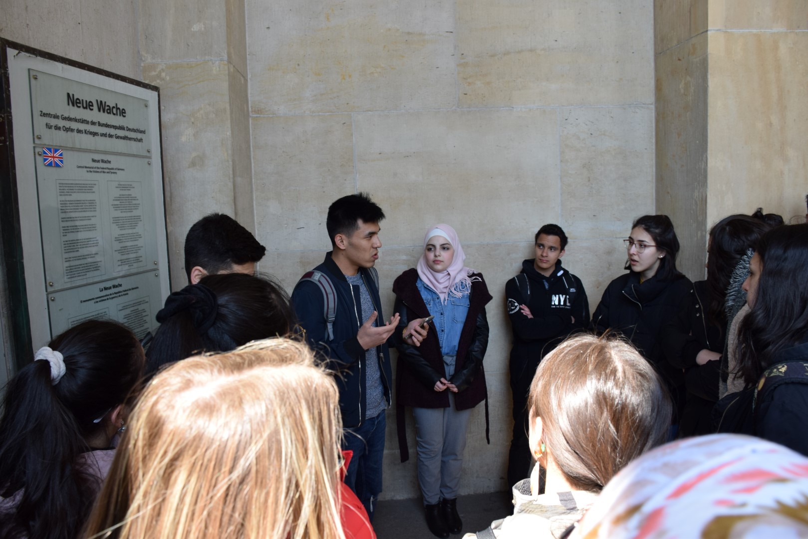 Nach der Mittagspause gingen wir zum Denkmal zur Erinnerung an die Bücherverbrennung wo uns Sana von den Geschehnissen 1933 berichtete und zur neuen Wache – einer Gedenkstätte für die Opfer von Krieg und Gewaltherrschaft. Dort erzählte uns Mahdi über die Widerstandsbewegung der Geschwister Scholl.