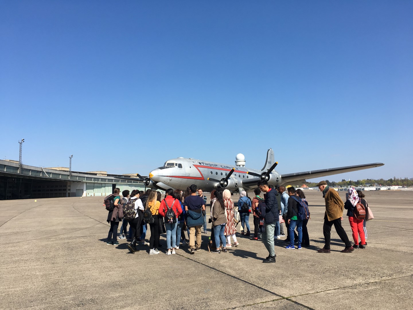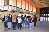 Am Nachmittag besuchten wir den ehemaligen Flughafen Tempelhof. Seine Architektur ist ein Beispiel der Gigantomanie zur NS Zeit. Es ist aber nicht übertrieben zu sagen, dass er als die „Mutter aller Flughäfen“ gilt. Mit unserer sympathischen Tourguide erkundigten wir die verschieden Facetten dieses Flughafens angefangen von den Zwangsarbeitern, die dieses Gebäude errichten mussten, bis hin zu seiner vitalen Rolle bei der Luftbrücke und schlussendlich zu seiner Schließung 2008.“