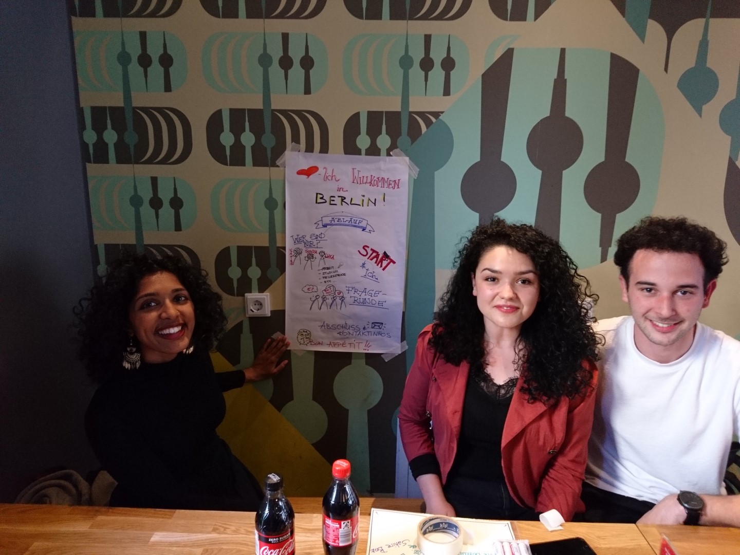 Nachdem alle gut angekommen waren, checkten wir in unserem Hostel in der Nähe des Bezirks Prenzlauer Berg ein. Dann gingen wir gemeinsam in Kleingruppen essen und machten uns mit der Umgebung vertraut.